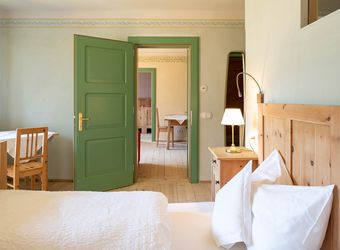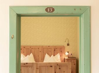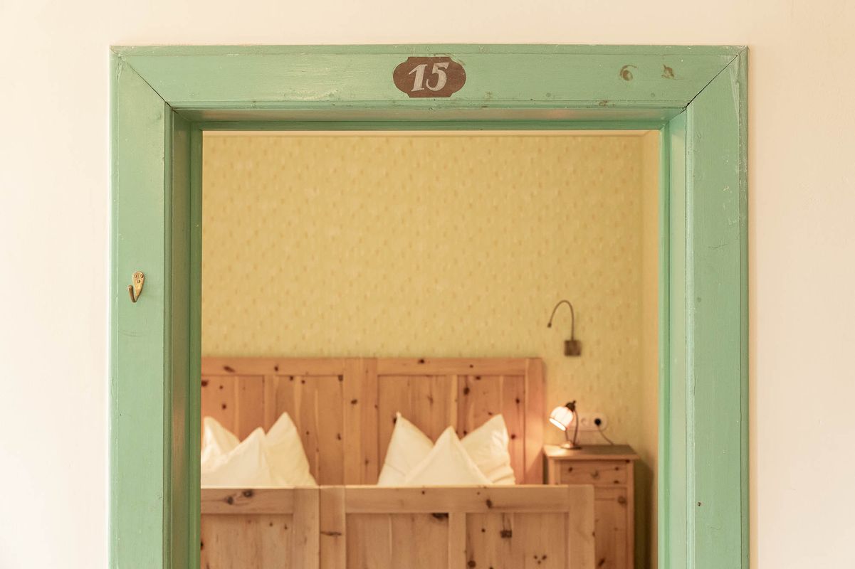 The guidelines were clear and well-defined: this was going to be a technical renovation with an eye towards history and an open mind for modern furniture and materials. Today the house lives on all these reflections and interventions: restored furniture, old tile-stoves, careful choice of paintings and coatings, individual lime and silicate based stencil painting according to historical models. We even recycled the old door numbers for the rooms.